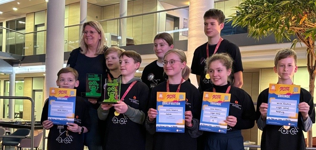 Dans le club de robotique, nous construisons et programmons des robots afin qu'ils puissent résoudre des problèmes sur le terrain de jeu actuel de la First Lego League. Pour cela, nous utilisons les Lego-Mindstorms de Lego Education. Nous participons également chaque année à la First Lego League.