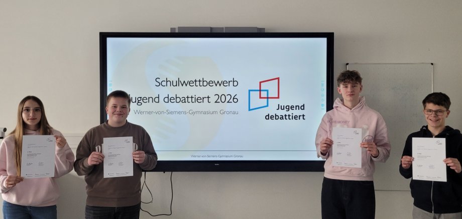 Maximilian Fortkamp și Noah Feldhues vor reprezenta școala noastră la concursul regional din 18 februarie, care va avea loc tot la școala noastră și unde se vor întrece cei mai buni debateri din școlile din jur. Le ținem pumnii amândurora pentru concursul regional!" (Hse)
