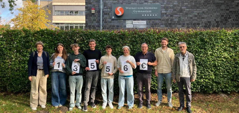 Consiliul elevilor (SV) a fost uimit când a fost stabilită suma finală a donației. Cu puțin timp înainte de vacanța de vară din acest an, la 3 iulie 2025, întreaga școală secundară s-a adunat în parcul orașului Gronau pentru a alerga împreună și a strânge bani pentru o cauză bună, în cadrul alergării sponsorizate organizate de consiliul elevilor și pe o vreme perfectă. Suma totală rezultată, de peste 13 500 de euro, a fost acum donată proiectului privind taxele școlare din Uganda al comunității corale St Agatha din Epe, reprezentată de Barbara și Martin Narowski. Școala, și în special consiliul elevilor, a fost implicată în proiect de mulți ani și, prin urmare, este cu atât mai încântată să poată folosi această sumă pentru a oferi mai multor tineri acces la învățare și educație. O mare parte din sumă va acoperi costurile școlare de 300 de euro pe an pentru 20 de elevi. În plus, donațiile vor fi utilizate pentru a finanța alimentarea cu apă necesară și un paratrăsnet pentru dormitoare.