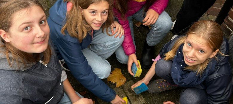 Echipați cu găleți, bureți și lustre, elevii au început să curețe Stolpersteine. Proprietatea clasificată a fost un centru al rezistenței politice în perioada național-socialistă și găzduiește în prezent șapte Stolpersteine. Elevii au putut, de asemenea, să participe cu ajutorul unei aplicații, lăsând o lumânare digitală la fostele case ale locuitorilor din Gronau.