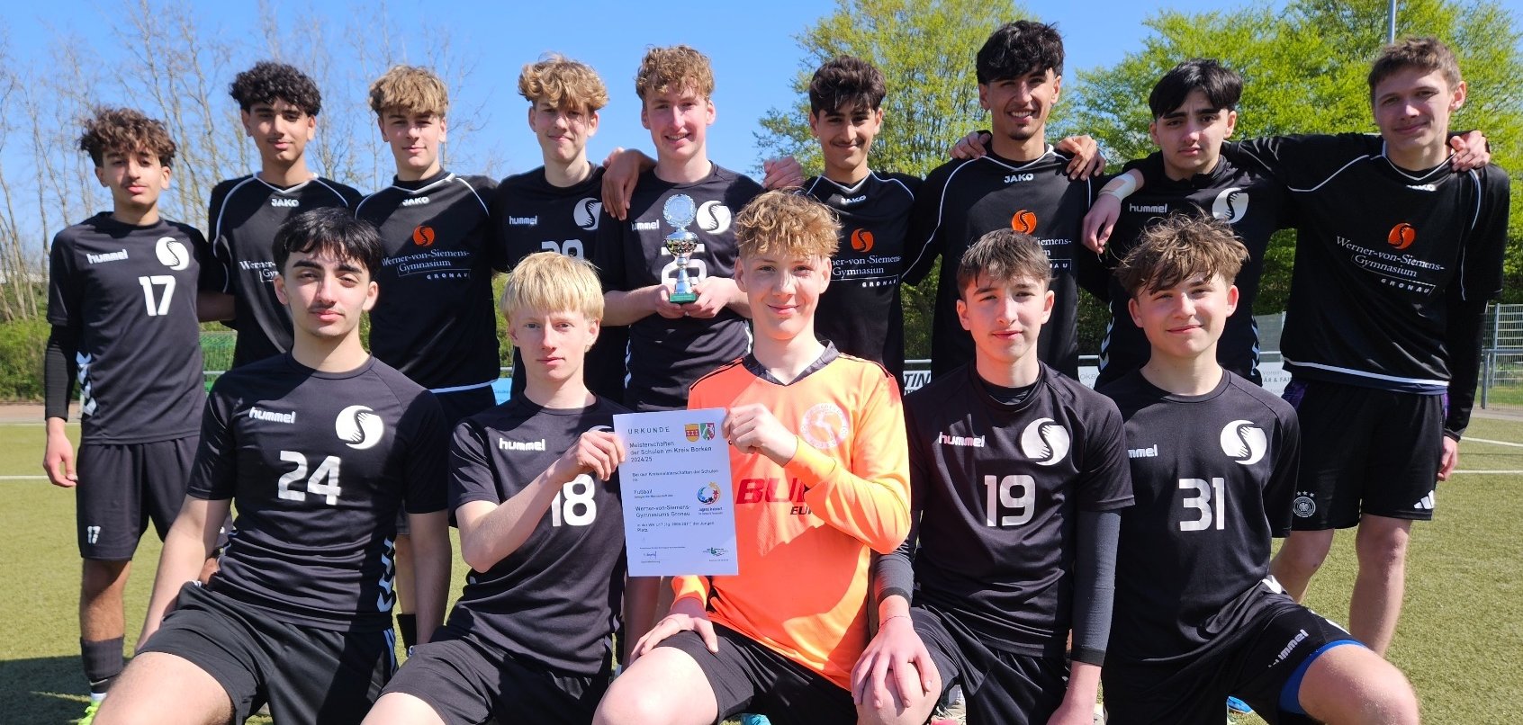 Школьная команда из Вернер-фон-Зименс-Гимназии Гронау (возрастная группа 2009-2011 гг.) завоевала титул чемпиона округа на окружном чемпионате (футбол Wk II) в Бохольте 9 апреля 2025 года. На пути к чемпионскому титулу школьные команды из Вредена, Бохольта, Боркена, Штадтлона, Ахауса и ...